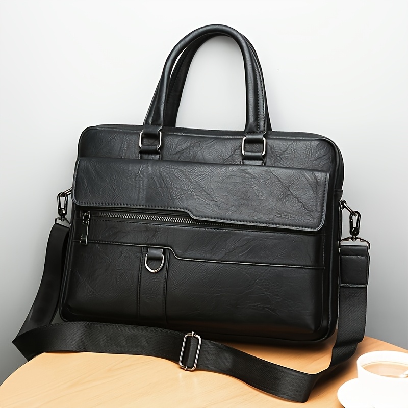 - Sleek & functional men’s laptop bag fits 14″–15.6″ devices. Synthetic leather, multiple pockets, shoulder strap—ideal for business or casual travel.